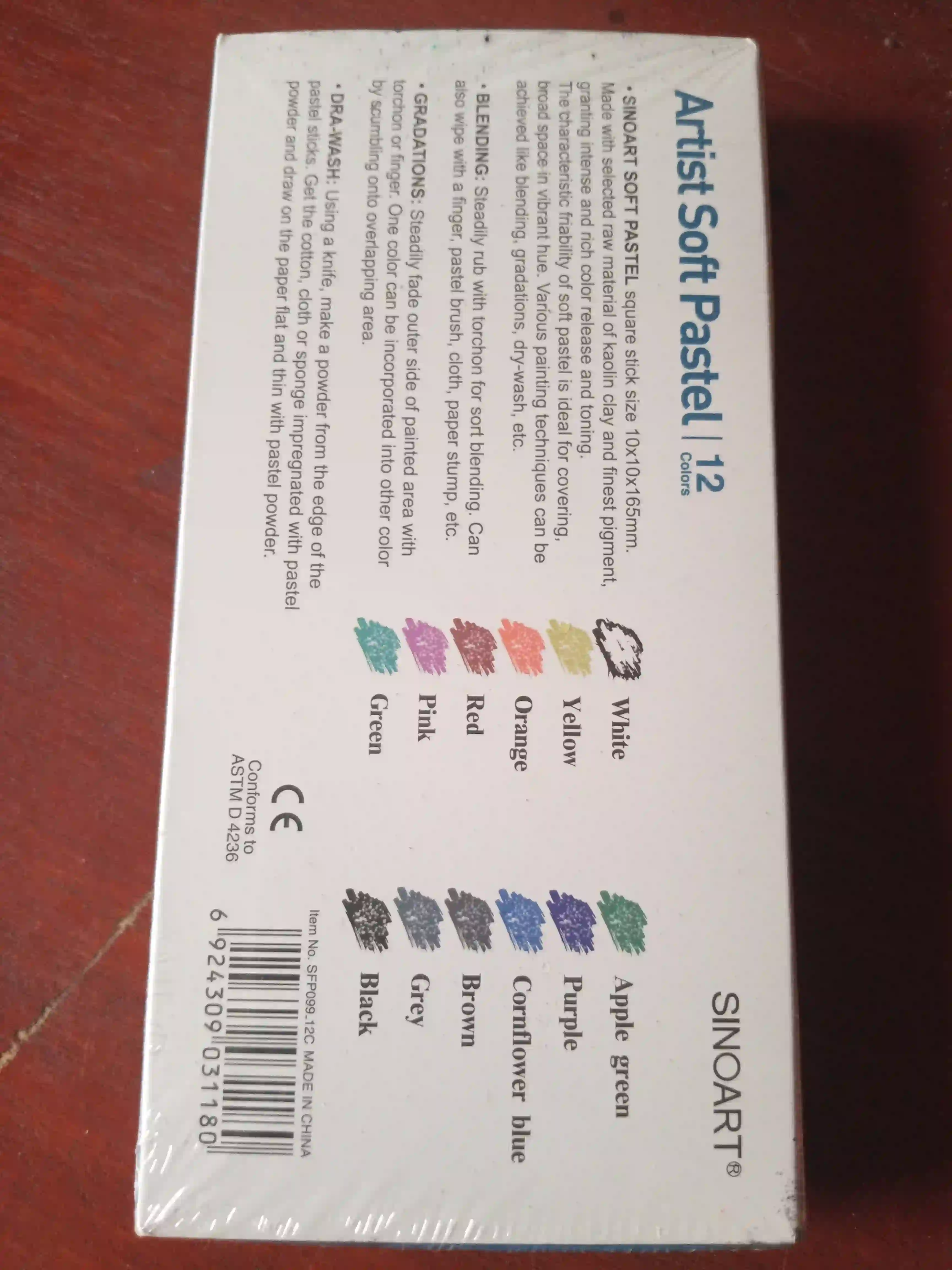 Sinoart Soft Pastels are made with high-quality pigments and kaolin clay, providing intense, rich colors and tones. Here are some technical details: